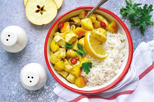 Currygeschnetzeltes mit Hähnchen und Früchten