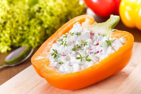 Franz. Ziegenkäse, Datteln, Weintrauben, Walnüsse, Paprika, Rucola, Salat, Frischkäse, Söweet-Honey-Mustard-Dressing