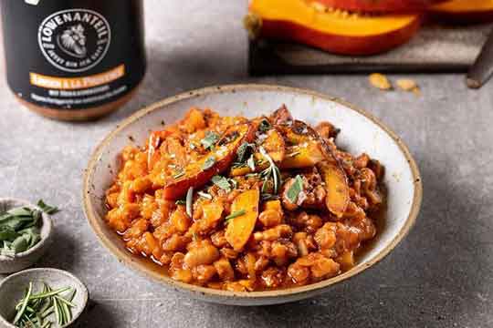 Unsere veganen Linsen à la Provence enthalten einen leckeren Mix aus Linsen, weißen Bohnen und saftigem Hokkaido-Kürbis. Kräftige Tomaten, intensive Gewürze und Lorbeer-Blätter bringen dich auf eine Geschmacksreise in den Süden Frankreichs.