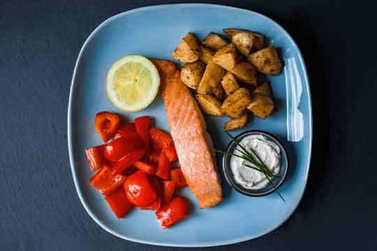 Food Delivery - Prepmymeal - Lachs, Kartoffeln, Paprika & Saure-Sahne-Sauce