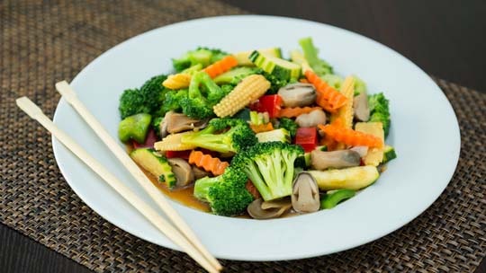 Pak Choi putzen, waschen, nach Belieben halbieren und im Dämpfeinsatz eines Kochtopfes in kochendem Wasser 5–10 Minuten dämpfen.