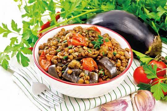Indischer Linseneintopf mit Aubergine