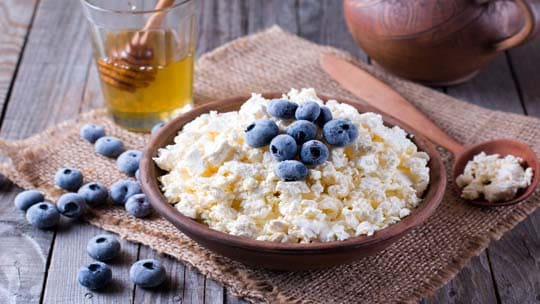 Körniger Frischkäse mit Heidelbeeren