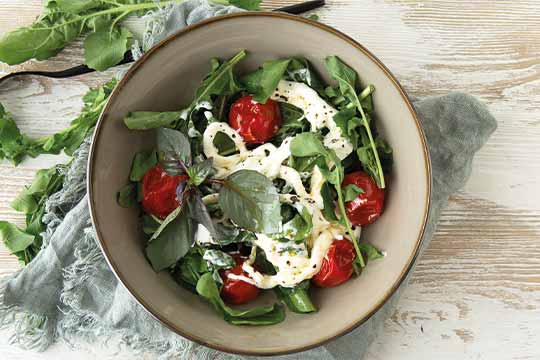 Auf ein Salatblatt Rindfleisch legen. Rote Zwiebeln in Ringe schneiden, Tomaten in Scheiben schneiden. Rote Zwiebeln, Tomaten und Käse auf das Rindfleisch legen, noch ein Salatblatt als Deckel darauf legen.