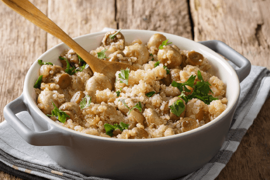 Quinoa mit Pilzen, Petersilie und Zwiebeln