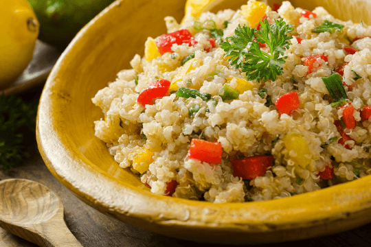 Sobald der Reis fertiggekocht wurde, diesen abtropfen lassen und in eine große Schüssel geben. Die Hafercuisine darauf verteilen und gut mit dem Reis vermengen.
