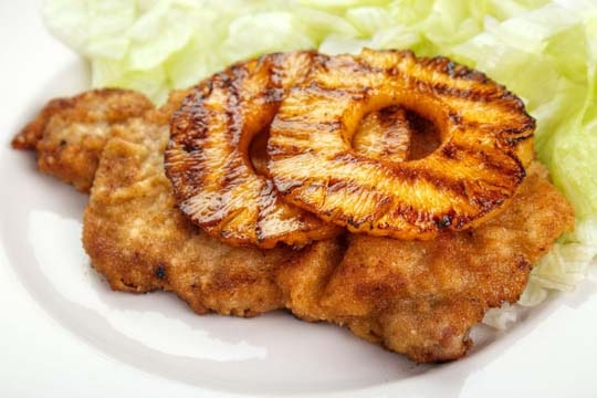 In einer Pfanne etwas Öl erhitzen und anschließend das Hähnchen beidseitig goldbraun anbraten lassen.