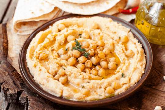 Das Hummus mit Salz und Pfeffer abschmecken und kühl stellen.