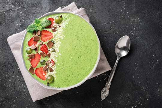 Smoothie-Bowl mit Avocado, Bananen, Mandeldrink, Acaipulver — Kalorien, Protein & Nährwerte