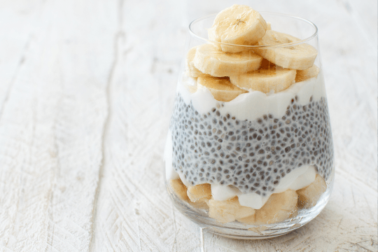 Eine Banane schneiden und auf die Smoothiemasse geben.