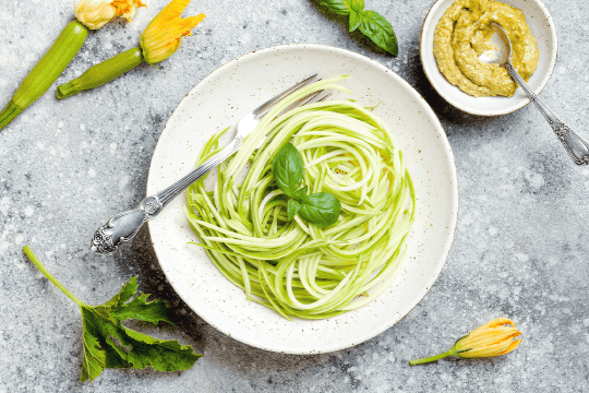 Zucchini-Spaghetti mit Basilikum